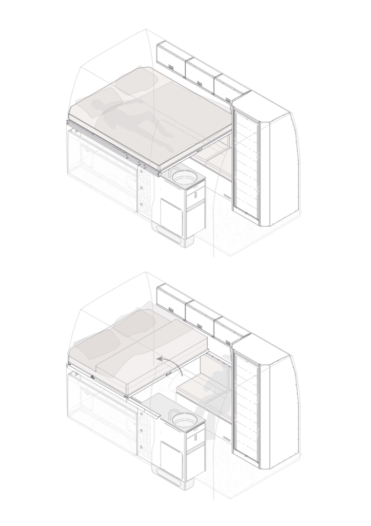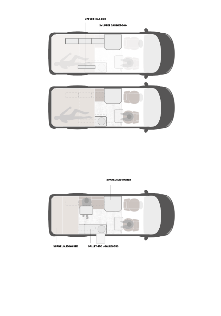 Our interior system outperforms the status quo by being super lightweight, has exceptional insulating properties and is fully compatible with the factory dimensions of Mercedes-Benz. The highest material standard is applied for maximum durability, which includes powder coating aluminium, ABS, hydrofoob closed-cell foam and automotive standard fabrics.