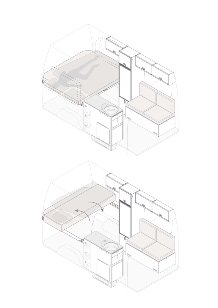 This interior configuration is has an ideal balance between sleeping comfort, interior space and lightness.