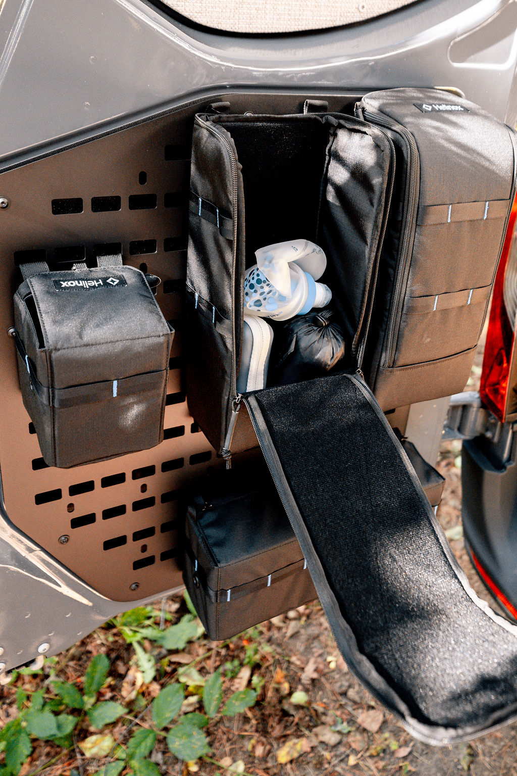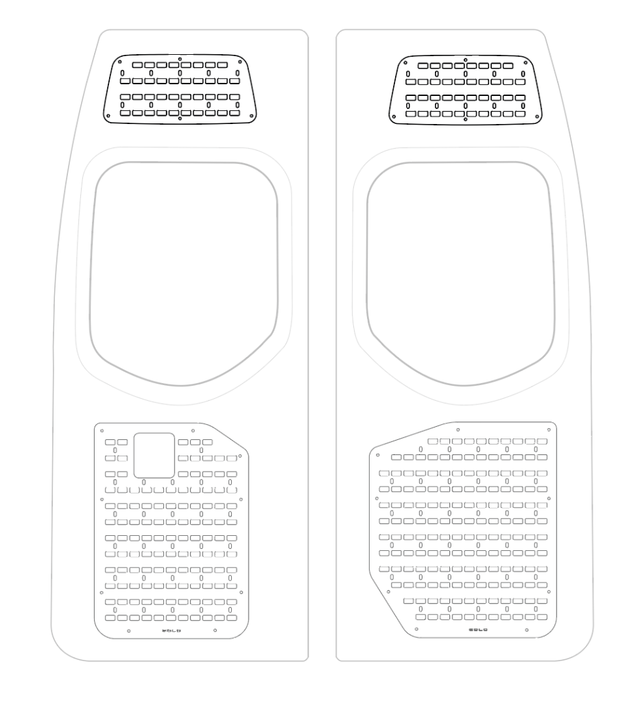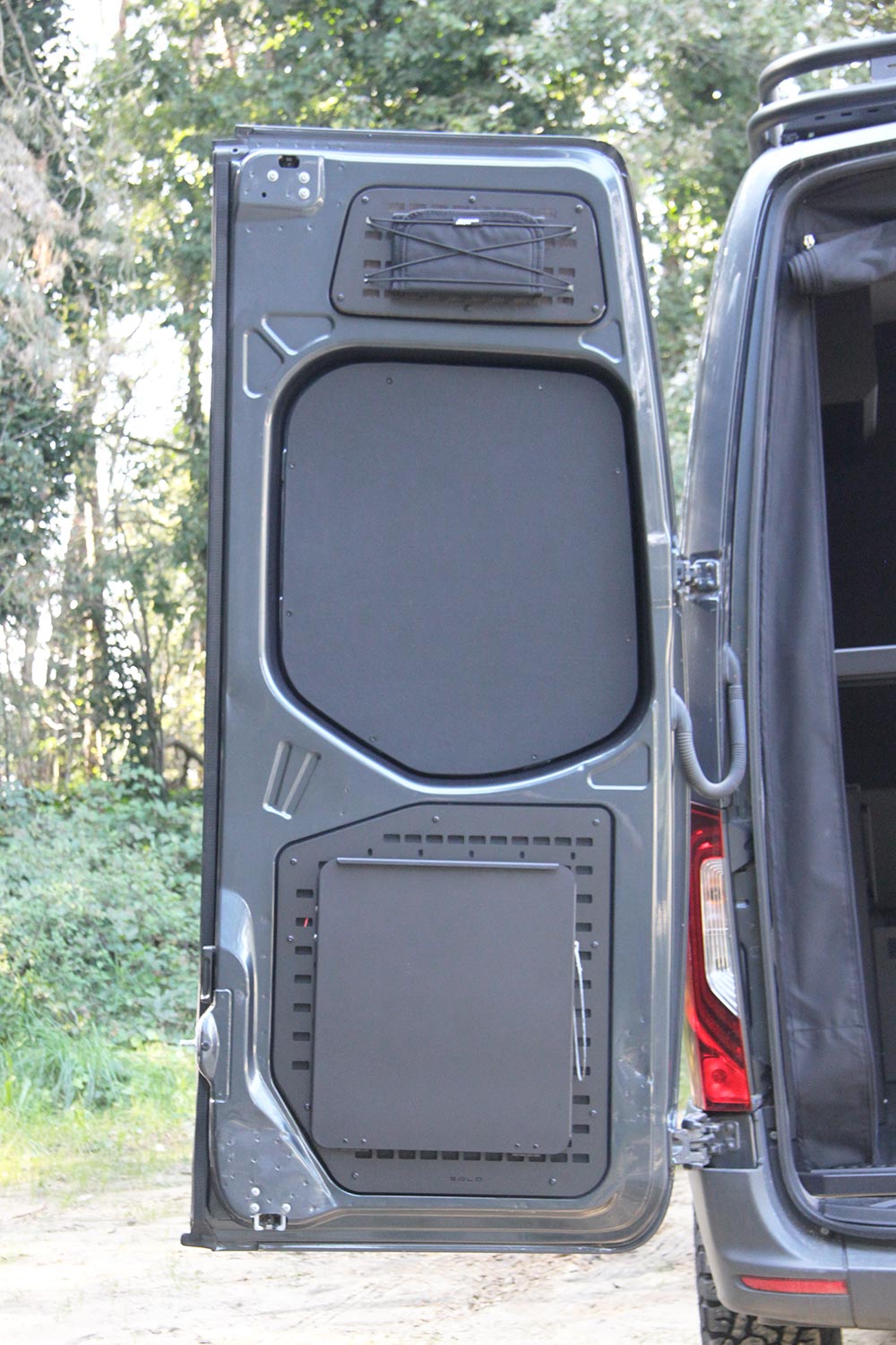 The luggage racks are installed on both backdoors of the van and can be used for many application and will increase your storage possibilities. For example to mount some extra storage bags, chairs or a small table. It is also compatible with the MOLLE system.
