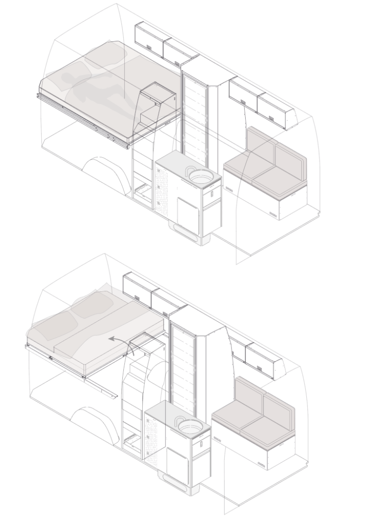 This interior configuration is has an ideal balance between sleeping comfort, interior space and lightness.